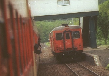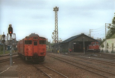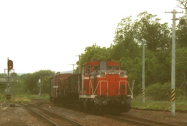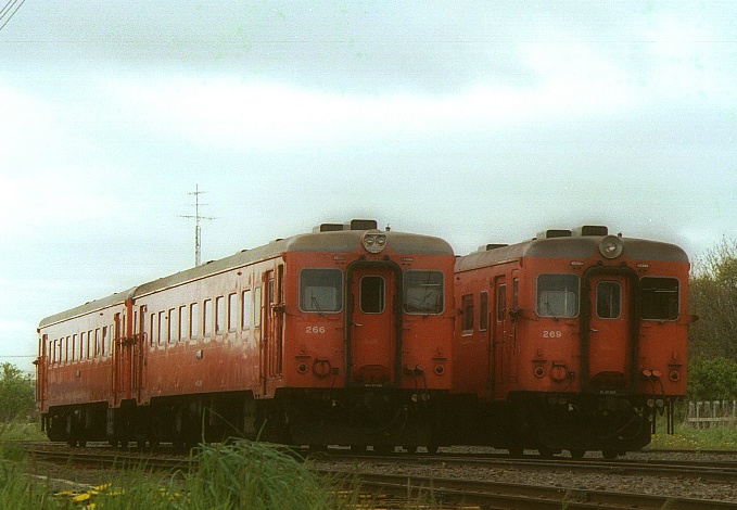 午前中の網走での自由行動時間を使って女満別まで行った。行きはキハ22-238帰りはキハ22-140で、キハ22-140は客室灯が白熱灯だった。女満別に着くとタイミング良く貨物がやって来た。列車がいなくなった構内では黄色いモーターカーが行ったり来たりしていた。自由行動終了後、昼メシを食べたオホーツクセンター裏で網走行急行しれとこも写せた。 |