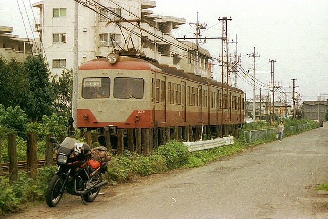 | 特急鳥海の待避とEF55の発車を撮って13:46八木原駅発、R17を上る。下り車線に白バイが何台もいた。前橋市街を通り14:17(310キロ)高崎観音前通過、交差点を右折した。途中から吉井への田舎道に入る。14:30(314キロ)上信電鉄の大カーブ撮影ポイント着、保線の人に上り貨物列車の通過時刻を尋ねたら14:52頃と教えてくれた。模型の様なデキの牽く貨物列車を撮り、15:02大カーブ発。R17・R18経由で軽井沢へ向かう。碓氷峠旧道は空いていて涼しく快適だった。16時過ぎに軽井沢着、旧軽銀座で1時間ほどブラついて富岡のおばちゃん家へ向かう。17:41(401キロ)富岡のおばちゃん家着、8チャンの夕ニャンをぎりぎり見れた。新田恵利が唄っていた。つづいて18時のニュースで5分近くEF55復活運転のニュースをやっていた。それから従兄弟とキャッチボールをした。夕メシはてんぷらとピーマンの肉詰めだった、美味かった。テレビ金曜ロードショウで風の谷のナウシカというなかなか感動モンの映画を見て風呂に入り23:30に寝た。 |