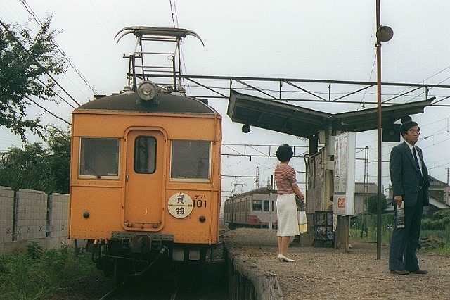 | 6:15起床、朝メシをいただく、テレビの天気予報は「一日曇りでしょう」と言ってた。7:10富岡のおばちゃん家発、R18から県道安中渋川線へ、渋滞をすり抜ける。前橋駅前を通過し、8:10(240キロ)三俣駅着。丁度黄色いデハ101が赤城方面から来たので急いで写した。デハ101の発車後、成増から上毛電鉄とEF55を撮りに来たお兄さんと喋る。 |