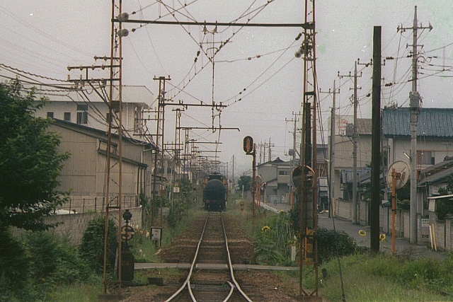 中央前橋から戻ってきたデハ101は「貨物」の運板を出していた。一旦西桐生方面のホームに停車後、側線のタキ2両と連結し、貨物電車が組成された。貨物電車が西桐生方面に向かって発車するのを見送って、8:52三俣駅発。県道からR17へ八木原駅に向かう。 |