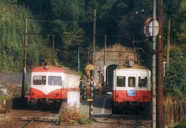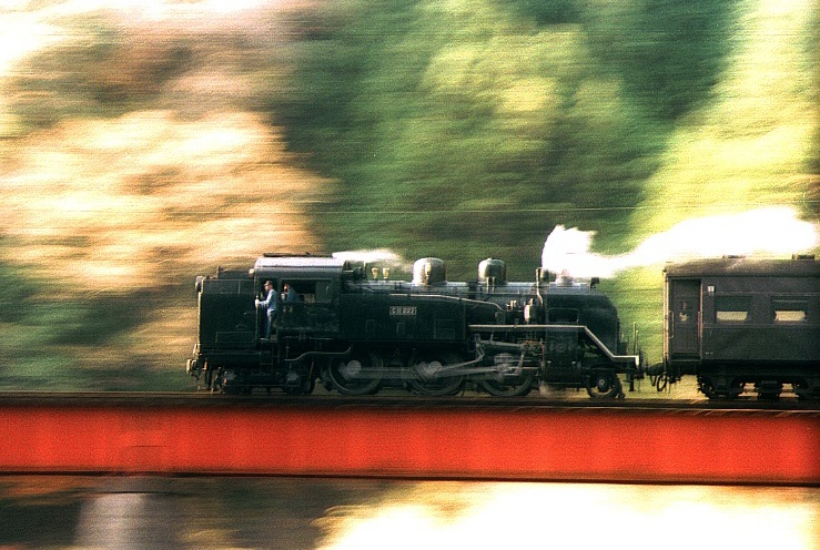 | 大島が噴火して大変な今日この頃、毎年恒例の川根路ツーリングは決行なのであった。俺は迷彩MT8、Yは訳ありDJ1で行き、あっちでTLR200のNと、電車組のSとMに合流する。 22日晴 17:40家発、大島の噴火が見たいというYの希望により、とりあえず平塚の花水川河口へ。18:15花水レストハウス着、海上は曇っていて大島の噴火は見えなかった(夜晴れていると、溶岩の赤いのが見えるらしい)。18:35花水レストハウス発、125cc以下なので西湘BPには入れずR1を西へ。土曜日で混んでいる箱根湯本駅前を19:13に通過、峠を越えると寒くなりだす。下り坂を飛ばしていると、後ろから2ケツのGPZが来たので左に寄って護ると、ハザードランプを2回点滅させて闇に吸い込まれて行った。20:03〜15出光三島GS、Yが給油、俺は小便した。のろいトラックを追い越そうとしたら対向車にぶつかりそうになった。20:26沼津市街通過、特急出雲を見た。50円払って富士川を渡る。21:06中央エリア(ドライブイン)着、やっとタバコにありつけてYはホッとしていた。俺はハングオンをやった。21:25中央エリア発、無風で走り易い。21:42日石清水インターGS,給油4.3リットル入った495円。22:20静岡駅前通過、安倍川橋手前のラブホテルが火災のようで消防車がたくさん停まっていた。21:35丸子で、警察が検問をやっていて俺達も停められた。免許を見せると「お出かけですか?」バカボンのレレレのオヤジ風に尋ねられたので「ハイ!」と答えると「お気をつけて」と解放してくれた。訳ありDJ1のYはヒヤヒヤしていたが大丈夫だった。後から来たVFR400Fは、しっかりと停められて色々と聞かれていた。藤枝BPにも入れずにさらにR1を西へ。22:50〜23:10フレッシュセブン藤枝五又路店、キュービックコーヒー・パン・おにぎりを買い、肉まんを喰いつつ休憩する。島田BPは原チャリもOKだ、車も少なく気分良く飛ばす。金谷から県道に入る、真っ暗でカーブがきついので慎重に走る。0:13笹間渡駅着、疲れたので田野口ではなくここで駅寝することに。終電も行って真っ暗な待合室をMT8の補助灯で照らして寝床をつくり、さっき買ったおにぎりを自販機のコーンスープで胃に流し込んだ。小便をするため外に出て夜空を見上げると星が凄かった。0:30就寝。 23日 6:35起床、寒い!5度だ。ラジオをつけたが全然入らない。7時過ぎにチャリを押した女子高生が来たので「おはようございます」と挨拶して荷物を寄せた。Yは色々と話をしていた。Yが持って来たデカイ焼き鳥の缶詰を固形燃料で温めて食べた。8:25笹間渡駅発、丁度消防隊パレードとかで消防車7台の後をノロノロと走る。8:36地名駅着、茶畑の前に原チャリを止めて電車組のSとMを待つ。8:50の千頭行で二人が到着した。みなで笹間渡寄りへ移動する。茶畑の中から俯瞰気味に狙う。 |