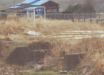 引込線の終点 線路が3本に分かれている、右側は相模(馬入)川。 |