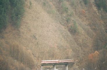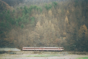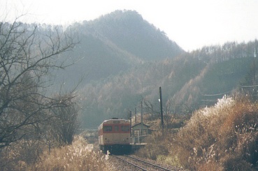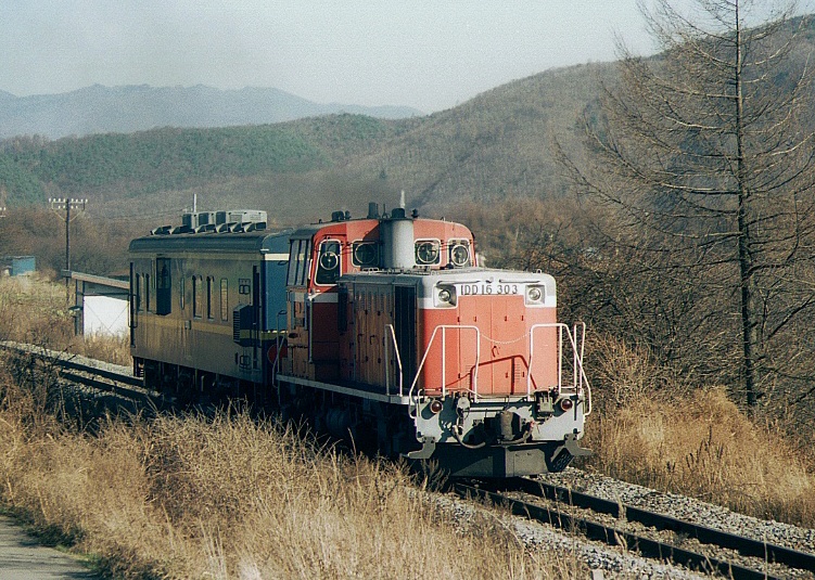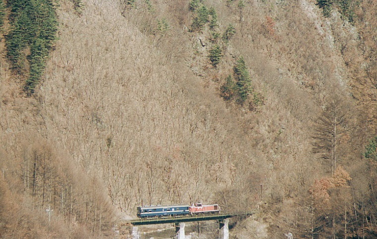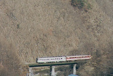 6:52起床、51分発の小淵沢行ディーゼルカーの音で目が覚めた。続いてMも起きる。外は曇っていて、しんしんと寒さがのしかかってくる。エンジンを掛けてヒーターをいれた。続々と通学の学生が集まってきたので逃げるように7:35海尻駅発、途中でジュースを買って7:50海ノ口俯瞰撮影ポイント着。朝メシにする。226Dを撮ってからロケハンする。海ノ口付近の畑で一本・佐久広瀬駅で二本撮り、結局マヤ検は最初の海ノ口俯瞰撮影ポイントで撮ることにした。マヤ検の前にUCCカラーのキハ56が走って行った。12:09マヤ検通過。