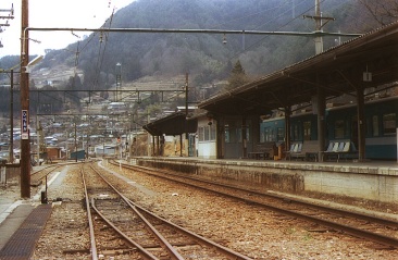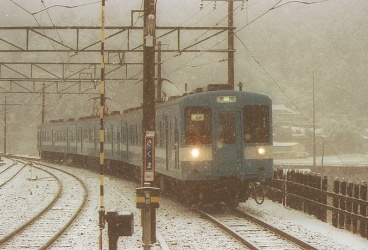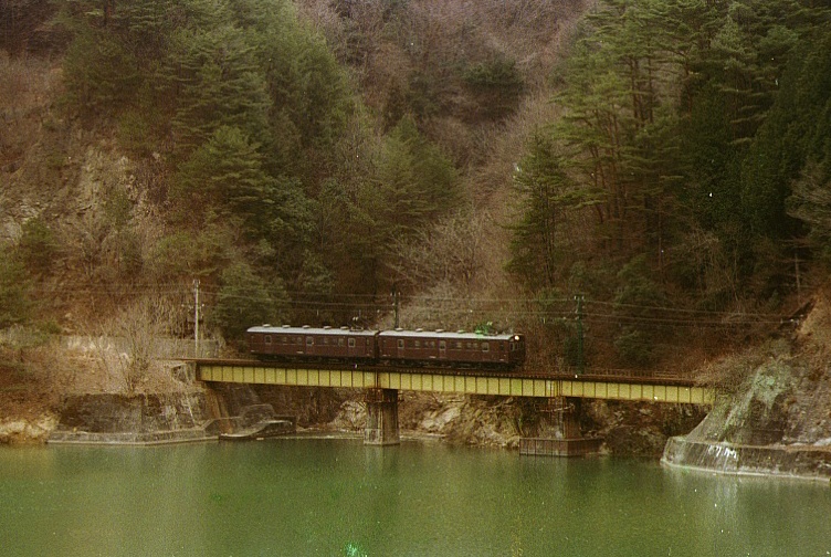 8:35平岡〜為栗間の撮影ポイント着、天竜川の対岸から写す。8:49に霜取り電車回送が通過、119系を撮って9:10発。クモヤ22霜取り電車はこれ以上追っかけできないので、旅行貯金しながらのんびり中部天竜へ向かう。9:25〜40平岡駅、9:33発の豊橋行を撮る。雪がパラついてきた。神原郵便局・富山郵便局で旅行貯金した。シェルGS、給油1.7リットル入った、2ストオイルも補充した。雪が積もりだしたのでロープをタイヤに巻きつけロープチェーンにして慎重に走る、スクーターなので足着きが良いので結構快適だ。長いトンネルを3つ抜けて、11:55佐久間ダム(364キロ)着。すぐに中部天竜へ山道を下る、小雪になり積雪がなくなったのでロープチェーンをほどく。中部天竜駅で入庫した霜取り電車の回送 クモヤ22を撮る。12:55三好野食堂着、焼肉定食650円を食べた。疲れた体に効く。13:40三好野食堂発、佐久間駅前郵便局で旅行貯金した。