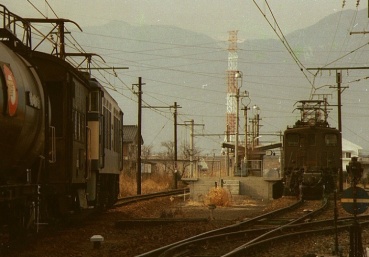 家を5:30にバイクで出発、のんびりR20を行く。7:30初狩で115系鈍行を撮る。笹子トンネルを抜け甲府盆地に入る。南甲府の身延線踏切を渡ろうとすると、EF15の単回がやって来たんで急いで富士寄りの踏切に行って撮った。南甲府駅で貨物のスジを教えてもらいに行ったら、丁寧にコピーまでしてくれた。お礼を言って出発、国母で貨物列車の交換を撮る。9:36下りEF15 199貨物列車到着。9:42上りEF64貨物列車通過、下りもすぐ発車。下りは南甲府で20分停車なので、先回りしてもう一丁狙う。南甲府の先の踏切で撮れた。フイルムが終り、巻 戻していたら手元が滑って途中で裏ブタを一瞬開けてしまった!慌てて閉めたが何コマかはイカれちまったろー!くやしい!今日のEF15の運転はもう無いので、駅で一息入れてから、河口湖へ向けて10:30出発、R20とR138を走る。御坂トンネルと河口湖大橋で通行料を20円ずつ払う。日陰には雪や氷があって危ない。トンネルを抜けたら、富士山と河口湖の眺めが素晴らしかった。気分はサイコー!12:05河口湖駅着、元小田急の5700形を撮りすぐ出発。12:30富士吉田駅着、すごく大きい駅でびっくり。バイクを停めて車庫へ行き、富士急の車両を撮らせてもらう。ここには、昨日車とぶつかった元小田急の5700形と上田交通からやって来た旧形車両と貨車とモーターカーが各1両いた。車庫からホームを見ると旧形っぽい富士急車が止まっていたので、駅に戻りホームに入れてもらい、それも写した。近くで観察するとかなり古そうな車で形式はモハ3603・3602だ、1M両運車が重連になっていて回送と表示してあった。12:50に発車して行った。窓口でネクタイピンを500円で買い、駅ビルのスタンドで350円の天丼味噌汁付きで昼メシにした。美味しく体も温まった。 | |