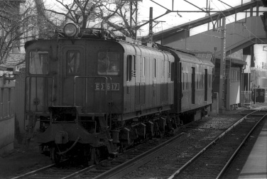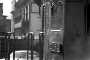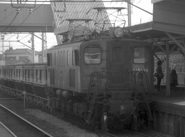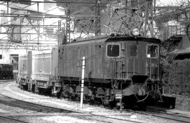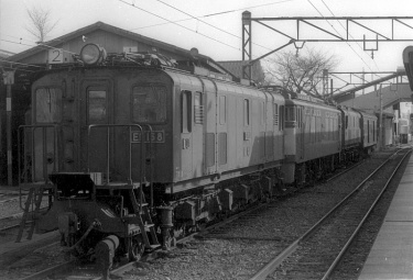 当時、私は鉄道写真よりも国鉄が主催していた乗りつぶし(いい旅チャレンジ20000キロ)にハマッていて、ED16がこんなに近くで走っている事を知らなかった。乗りつぶし(チャレンジ20000キロ)のために、相模線(4両編成中、珍しくキハ20が1両混ざっていた)・南武線と廻り、西国立を発車する時、左手に茶色い電気機関車が沢山停まっているのを見つけた。次の駅で折返して西国立に戻り、初めて見た古めかしい茶色い電気機関車がED16と知り、夢中で撮った。その後、川崎に出て根岸線に乗って平塚経由で家に帰った。 |