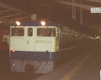 5:24三原に着いた。鈍行に乗り換え瀬野へ。瀬野駅から国道を30分ほど歩き有名撮影ポイントに着く。7:30から2時間30分粘るがEF59補機付きの貨物列車は通らなかった。年末で貨物が軽いからか?ガックリと肩を落としバス停で駅へ行くバスを待っていると1台のバンが止まった。運転していたおじさんが「駅までか?乗ってけ。」と言ってくれた。40歳すぎのそのおじさんは、種子島出身で建築関係の社長をしているそーだ。子どもの頃苦労して、俺みたいなイタイケな少年を見ると助けずにはいられないらしい。今では羽振りも良いので種子島の小学校に寄付などしているそーだ。瀬野駅に着き降ろしてもらう、お礼をいって別れた。機関区へ行き許可を貰ってEF59を撮った。とにかくでかいカマだ、デッキが長く迫力満点だ。昼過ぎに瀬野を出た。