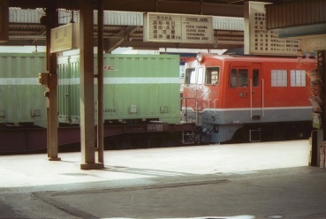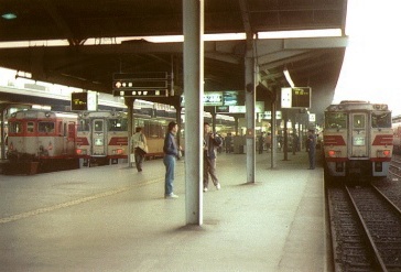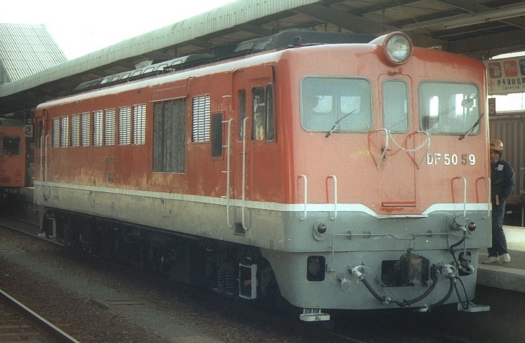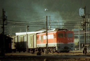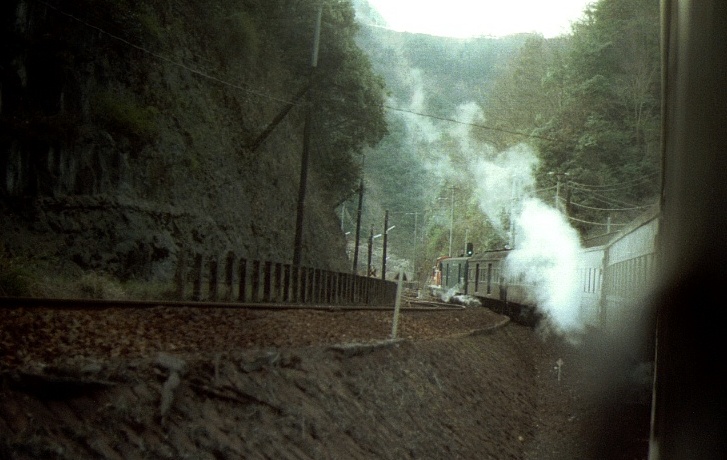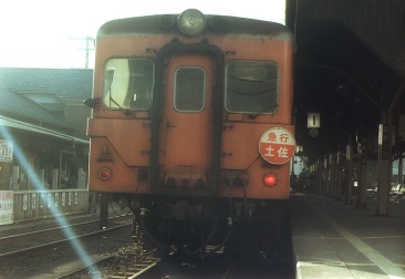 高松3:42着、連絡船に接続のため早朝着だ。5:02発の旧客鈍行で土讃本線を行く。デッキに出て朝の風を受ける。坪尻はスイッチバックの駅だった。7:06阿波池田着、駅弁700円を買っていたらDF50が到着したので写す。