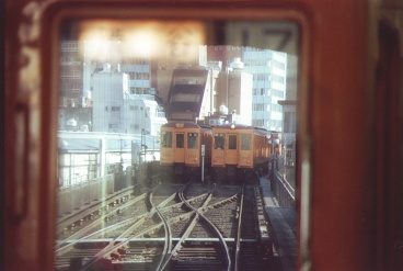 | 窓に映る引上げ線の車両 |