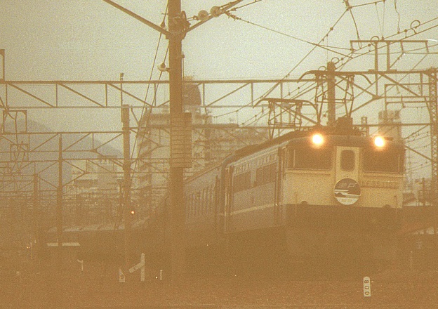 1985年3月 平塚付近 EF65-1107 薄暗い中、東京へラストスパート
