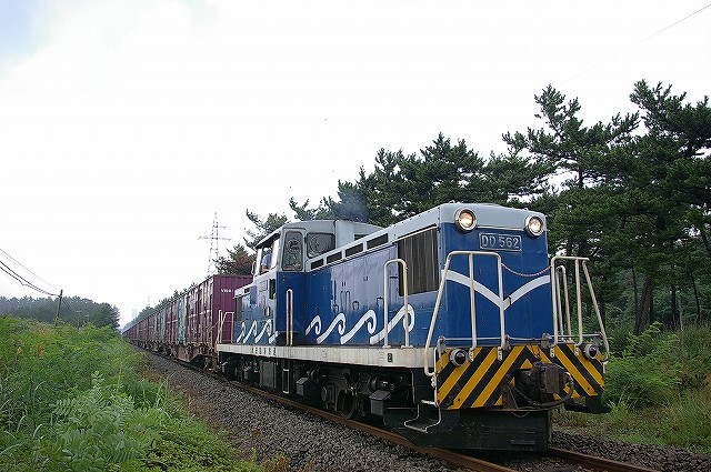 15:15 下り 貨物 DD562 土砂降りの中、鉄橋を渡る |