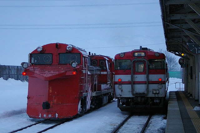 | 6:36 下り鈍行ディーゼルカーとの並び |