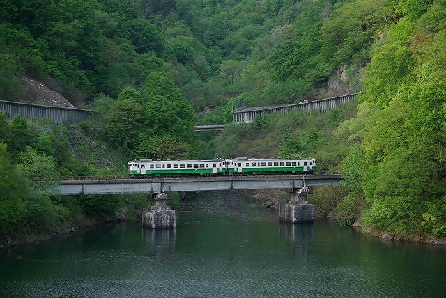 | アメリカに旅立つ友人の激励「鉄」キャンプを越後の山中で敢行。21日は専門外である上越新幹線と吾妻線、上越線貨物を中心に撮影。河原にテントを張り、日本海の肴越後の酒などなど痛飲した翌日は、元気ハツラツに只見線へ。 |