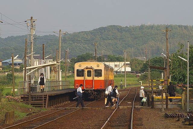 試験の3時間をフルに使いきり(150人中最後までいたのは私とおじさんの2名だけだった)、ちょっとヤマが外れ「ヤバイかなあ」と思いつつ海土有木駅へ。海土有木駅構内はローカル線らしい好ましいストラクチャーに溢れていた。また、中学生が挨拶をしてきたり、繋がれていない犬が走り回っていたりと、のんびりしている所だった。17:29発の上りを撮って、アクアライン経由で帰った。川崎までは快適だったがその先の渋滞と雷雨で家に着いたのは20時過ぎだった。