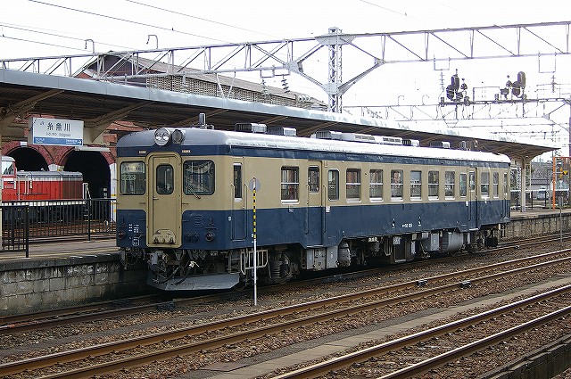 10:28松本着、駅進入時にクモヤをチェック。傘をさして10分歩いて構内の外れに行く。クモヤ143 52はパンタを上げて休んでいた。駅に戻り昼メシ用の弁当を見たら、美味そうな鳥弁のご飯の上に私の苦手な野沢菜がまぶしてあったのでパス、この後飯にありつけるかやや心配でビールとチーカマを買う。28年ぶりに乗った大糸線は混んでいた。ボックスの余りに腰かけた。ウトウトして目覚めるとガラガラ、足を投げ出しビールを開ける。13:01南小谷着、1番線に257系あずさが停まっている。すっかり快晴になった。乗ってきた電車を撮るため踏切へ急ぐ。撮影後付近をうろつく、悪い予感的中、めし処なし。カレーパンとコーヒーで昼メシ。根知で国鉄色キハ52 115と交換。糸魚川着、煉瓦の倉の奥に大糸仕様のDD16+ラッセルがいた。
