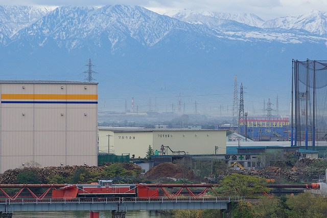 9:38 試9691レ DD15 13 キハ40の単行通過後10分で立山連峰は霞んでしまった |