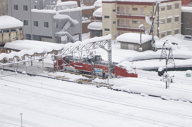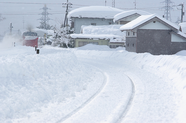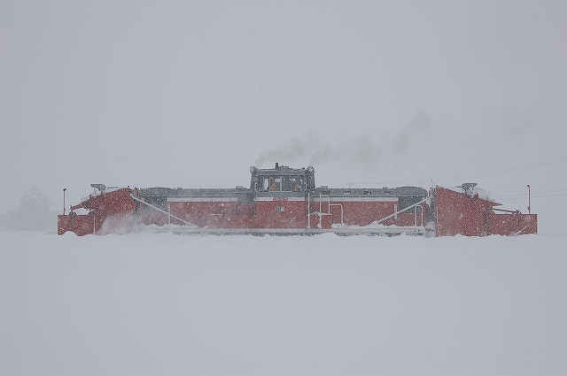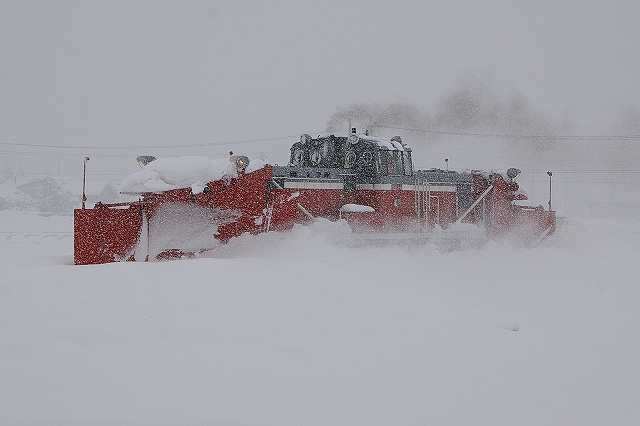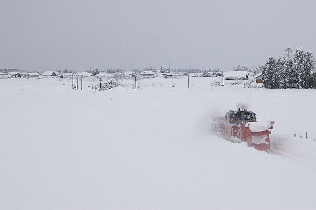 万葉線ラッセルの後、JRの北陸エリア終日運休情報が入る。どおやら福井あたりがこれよりも酷い状況らしい。様々な情報と状況から、城端ラッセルが運転されると判断し線路脇で待つこと数時間、お昼前にDD15ラッセルが通過!城端まで追っかけ撮影した。