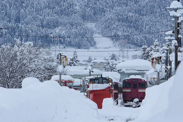 城端ラッセル撮影後、もしかしたら・・・と、大糸線に寄り道する事にし、小杉ICから高速代を奮発して糸魚川へ。北陸道は大雪だったことが嘘のように見事に除雪してあり、さっきまでの下道とえらい違いだ(高速の除雪担当者に感謝)。糸魚川ICより糸魚川駅へ向かい、踏切からいつもDD16がいる庫を確認すると空だった。 (後編へつづく)