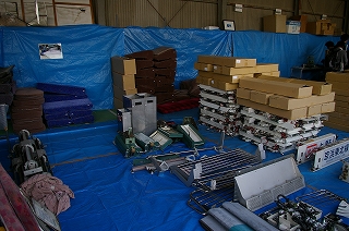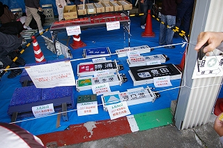 鉄道部品販売会会場  右下の183・201系やブルトレ幕などは入札制