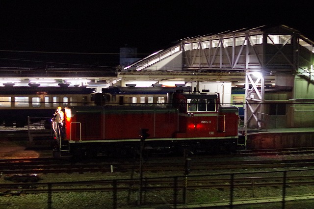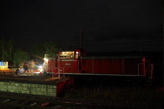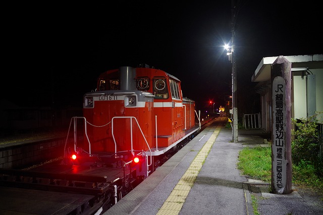 単9262レ 未明の野辺山駅に単機のDD16 11が到着 |