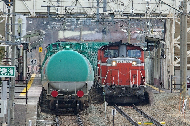 | 13:00 9293レ DD51 832【愛】+DD51 1188【吹】+タキx10発車 |