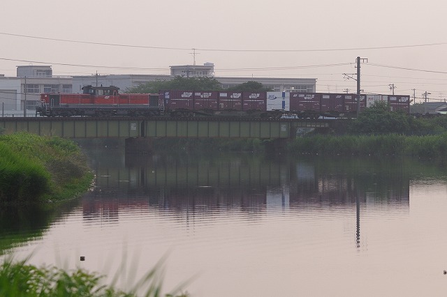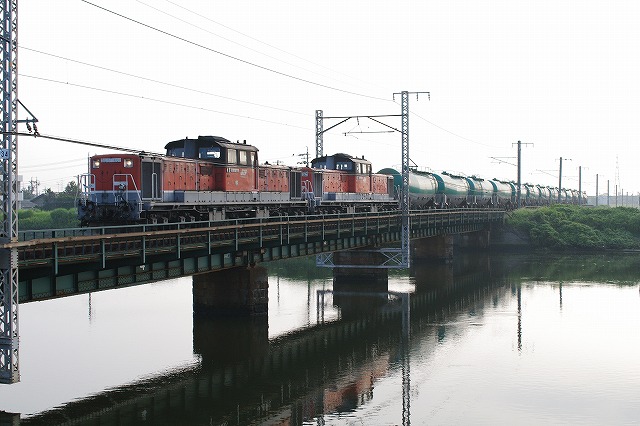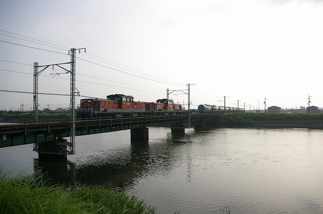 | 天理臨で満足し車中で爆睡、富田駅近くの公園で朝を迎えた。5時から活動開始、ロケハンスタート。今日のお題は、DD51重連貨物。いつも、四日市辺りの効率重視撮影だったので、蟹江〜富田辺りのロケーション重視で回ろうと思う。白鳥(信)近くの鉄橋サイドからスタートする。 |