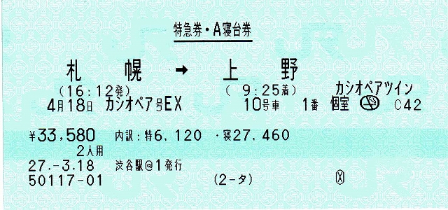 職場のS氏の手配により、上りのカシオペアツインEXのチケットが手に入った。せっかくなので、登別温泉に泊まりつつ、2015-3改正で辛うじて残った夜行列車撮影をセットした行程を組んだ。