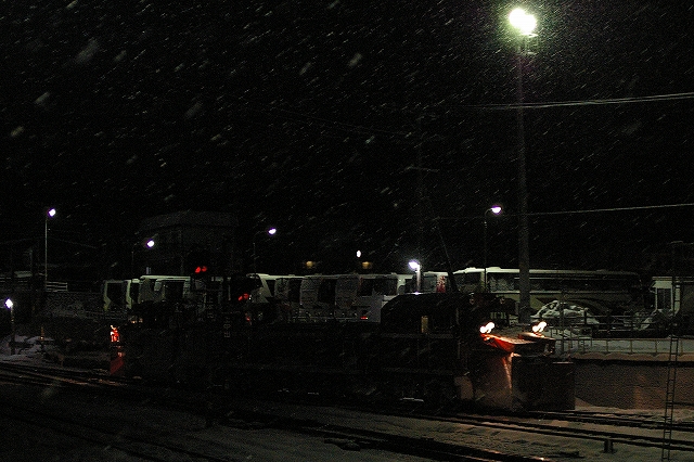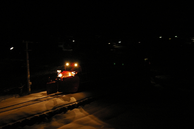 帰りも、行き同様数発撮影できたが、豪快な雪跳ね飛ばしシーンには遭遇できなかった。ラッセルの高山駅到着から転線まで見守り、追っかけが終了した。M氏と挨拶をして別れ、コンビニでおでんなど暖かいものを食べて8時前まで仮眠し、帰路についた。
