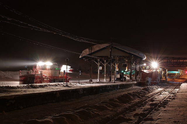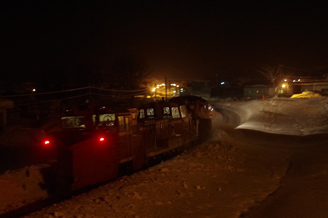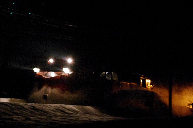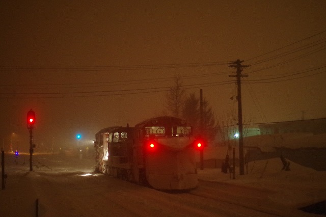 一昨年のラッセル撮影は、2日目が猛吹雪で、昼前から24時間近く宗谷本線が運休で散々な結果だった。今年は、そうならないことを祈りつつ渡道。スタートの旭川付近は雪が少なく、石北本線夕方の部もイマイチで今年もハズレ?と不安を抱えつつ宗谷本線夜の部がスタートした。