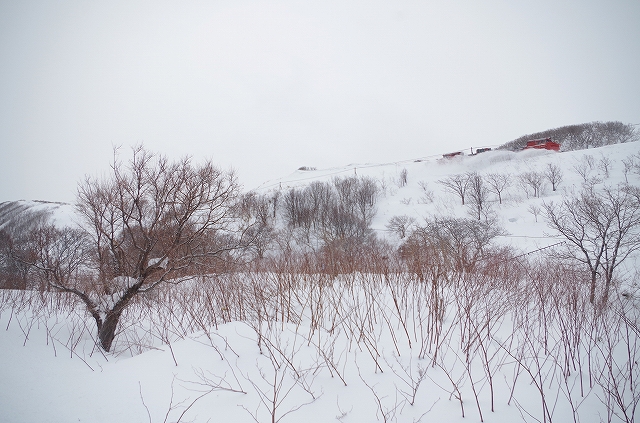 2時間ちょっと眠り、アラームで叩き起こされるも、一瞬何処か訳分からず、真っ白な世界を見て、稚内にいたことを思い出す。脱いでいたオーバーパンツやブーツを履き出発する。天気は曇り、残念ながら利尻岳は見えない。スタートは抜海〜南稚内の最果ての原野を行くところを撮る。前回は丘の上から海を望んだが、今回は単独行なので、無理せず丘を見上げる構図で。ラッセルは8:22に通過し、2015ダイヤよりも30分くらい下がっている情報が正しいことも確認できた。 |
