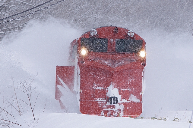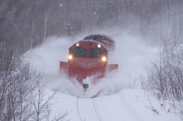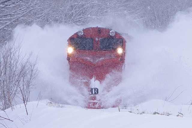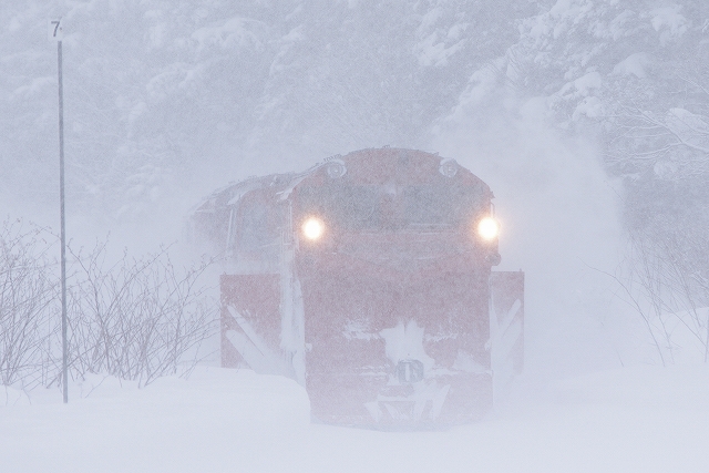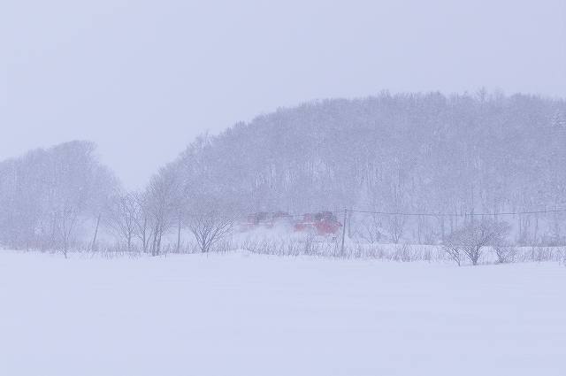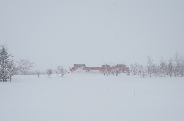 音威子府に近づくにつれ雪は強くなり、この先の撮影を断念し南線へ転戦する。音威子府の駅そばはパスして塩狩峠へと向かった。 |