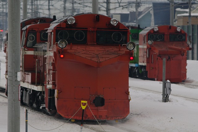 旭川運転所付近 早くもラッセルが出てきたと思って見ていたら、戻って行った