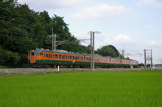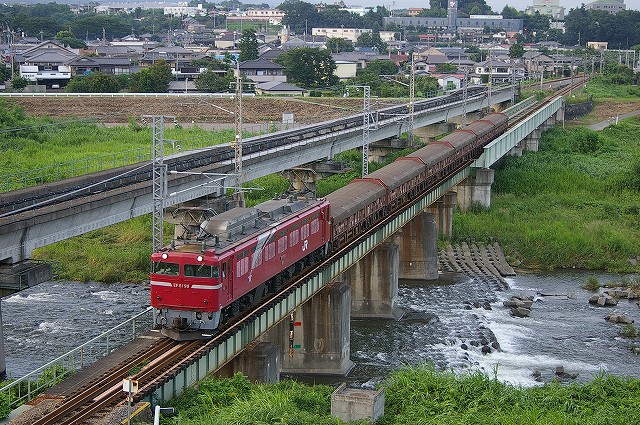 横川のおぎのやで昼メシ、釜めし・丼ぶり・ラーメン・そばなど各自好きなものを食べた。私は上州豚の丼を食べた。おぎのやはリニューアルしたようで、おしゃれでこぎれいになっていた。味も全部満足点だった。高崎で皆を降ろし、ここから大人の夏休み一人旅開始だ。まず信越本線の貨物列車だ。群馬八幡で来たのは107系だった(これはJR化後の電車なので掲載しません)。群馬八幡〜安中間の田んぼで数本撮ったあと、国道18号陸橋でEF81の貨物を待つ。5781レ通過後 安中駅へ追っかける。