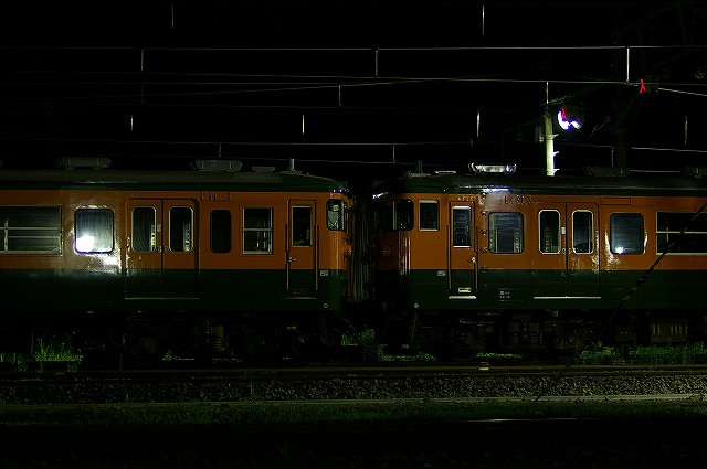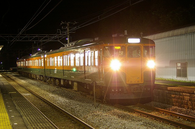 続いて上牧駅でバルブする。タイミングよく上下共に115系だったが、下りは6両でホームいっぱい、上りは3両だが停止位置が予想より前&ハイビームで激沈だった。