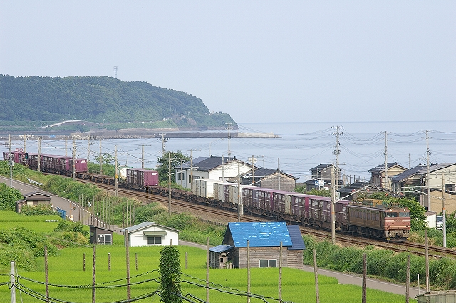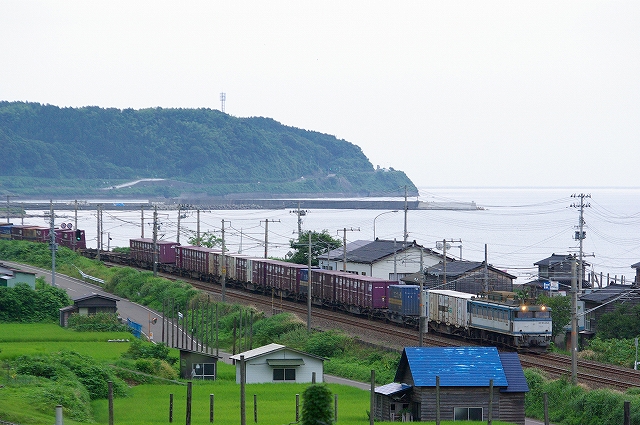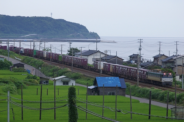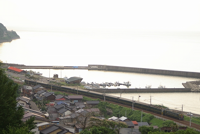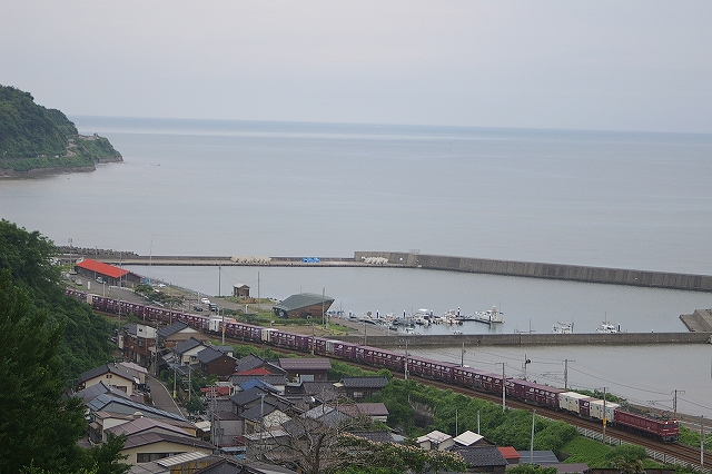 今朝も大雨の影響で、トワイライトなどが運休。朝練は、有間川港を望む俯瞰ポイントで急行きたぐにとEF81貨物を撮影。高台なので風が強く寒かった。
