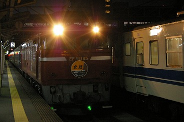 実は、2006年春に開業した富山港線改め富山ライトレールウェイの城川原駅のイメージ看板に「1980年代国鉄撮影日記」の富山港線の写真が使われているのです!で、それの見物と秋の味覚満喫と583系改造の419系撮影をセットで楽しむべく、特急北陸のB個室寝台で富山へ向かった。 B個室寝台下段で連れと軽く酒盛りをして上段へ、こっちの方が狭く感じる。明日の撮影プランをたてて熊谷を過ぎた辺りで寝た。 |