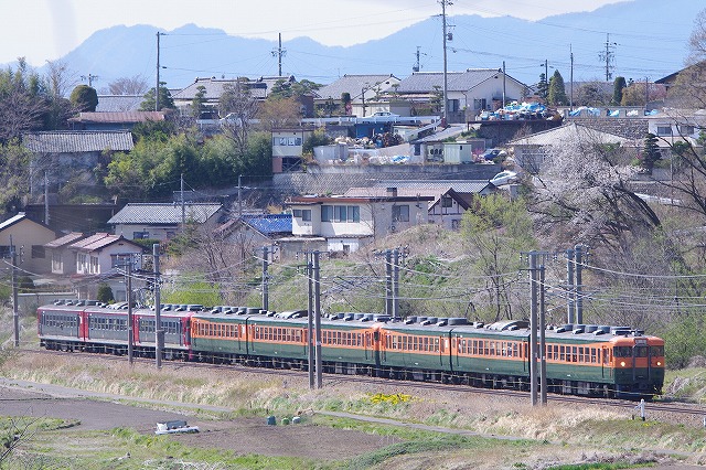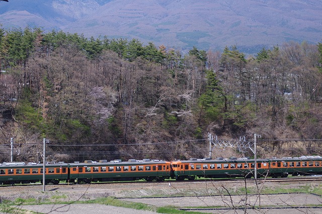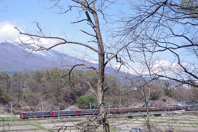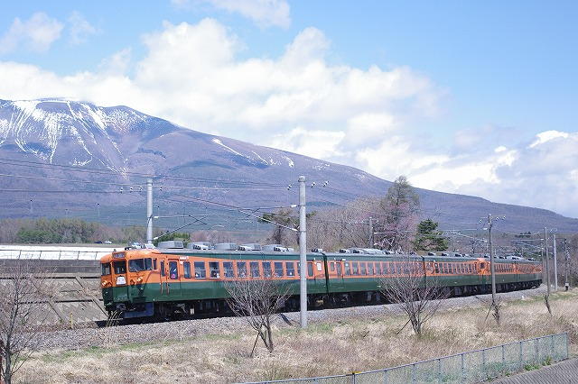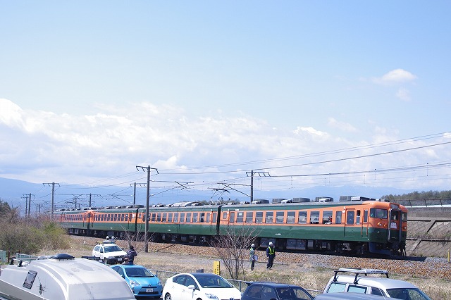 津久田俯瞰後、安中経由で軽井沢へ。下道の渋滞にハマり、高速使用したが軽井沢にはギリギリ到着、念願の急行志賀撮影。自分の旅の原点である列車なので(詳しくは別の機会に)HM付の姿を撮りたかったのだ。引退直前だがキッチリキメる事ができた。ついでに軽井沢駅での即売会で上野〜湯田中のレプリカサボも購入できて大満足だった。せっかく浅間山が出ているので、パニック覚悟で信濃追分〜御代田の浅間山バックお立ち台へ向かうと100名以上の人出。ここは何者かの桜伐採で有名になってしまったポイントだ。手持ちでさえもキャパが無いので、手前の標識が入るゾーンで撮る(掲載写真は標識を削除修正済)。風が超強かった。急行ありがとう・さようなら169系号は平原の停車を使って2発撮影。平原の畑の中はえらい人出だったが丘の上は0名。 |
