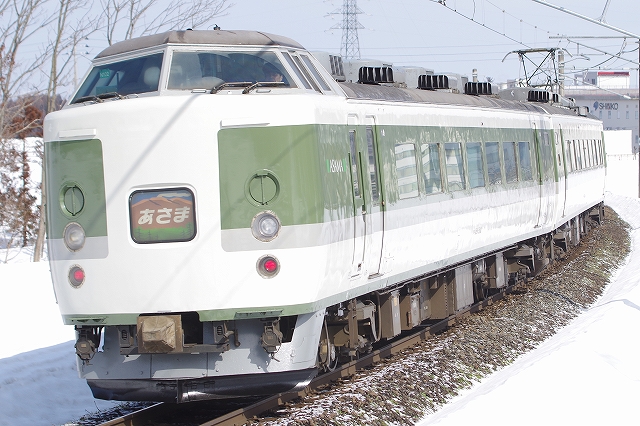 今日のメインは「ありがとう信越線号」189系N102編成が充当され、まさかの前後「あさま」HM掲出だった。サイドに追加されたASAMAロゴと共に往年の雰囲気が出ていた。大勢いると思っていたが、なぜか撮影者は少なかった。 |