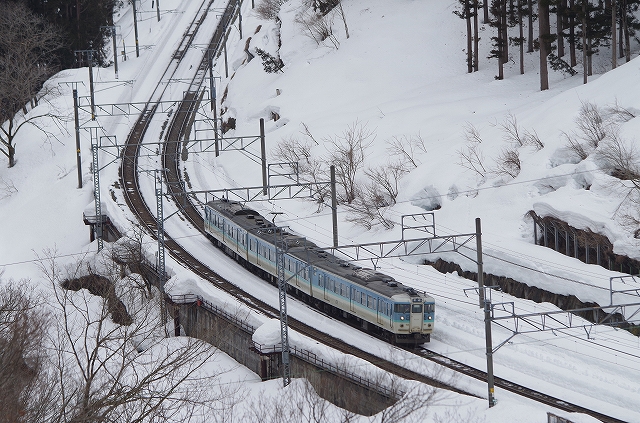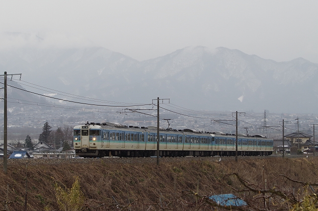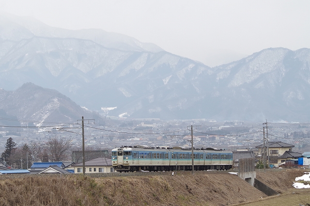 ラストは帰りのことを考えて豊科まで戻る。この日運転で、まだ写していない快速ありがとう信越線号を撮ってシメる。待っている間にしなの鉄道ステッカーの貼ってある115系3連の試運転が上っていった。15時になる頃、冷たい雨が降りだしてきた。