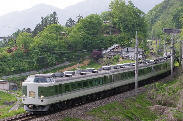 連休の最終日(世間は連休明けの月曜日)、姨捨で撮影。2014年7月のクモユニ143大糸線 快速「懐かしの115系横須賀色」以来久々のクモユニだ。検査出場試運転との事で、長野から聖高原までの一往復。待避が無いため、それぞれ一発勝負。その前に2時間も早めに到着し、未撮影の189系おはようライナーをゲット。その後場所移動し、往路はサイドで。 |