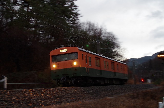 | 未明からの大糸南線ENRを追った後山越えして西条に向かった。予定した山道が落石通行止めだったため、一旦明科まで大回りしたため、通過5分前に鉄橋に到着した。西条で追い越してもう一発。1時間待ってムーンライト信州の回送を撮ってから撤収した。 |