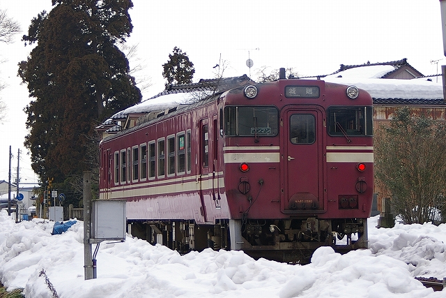 ボンたかの後、北越まで撮影し夕方から氷見の日帰り温泉に入る。4時間仮眠で、昨晩の長岡バルブからの疲れをとる。予報でいけば21時に温泉を出る頃には雪のはずだったがフツーに曇り空。これは今回はスカか?とガッカリしながら高山の知り合いに電話をするとやはり曇りとの事。同行の友人Hが「ブリ鰤ぶり」と五月蝿いので、とりあえず閉店間際のスーパーで氷見の寒鰤刺身(半額!)とご飯を入手し、車の中で食べて今夜の予定を話し合っていると高山から電話で「DE15が出庫した、運転ありそう」との報あり。慌てて車を高山に向けて出発させた。 |