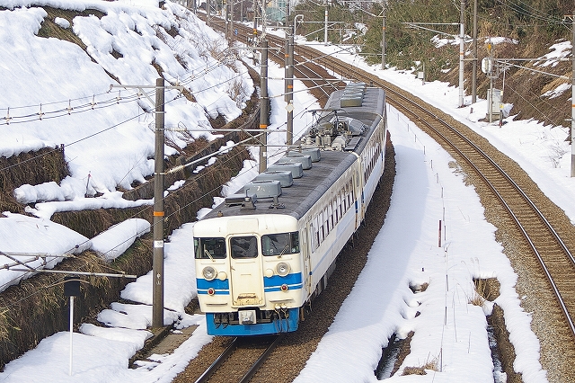 10:56 下り鈍行 455系 新青塗装 |