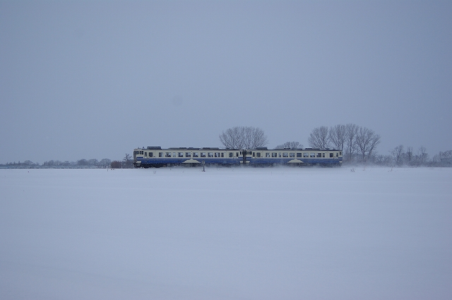 虹ガマあけぼのと宿のサービスに気を良くし、午後は津軽鉄道へ。運転速度がゆっくりで、普通に走って追っかけができた。 |