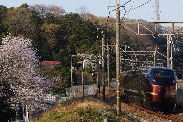 往路がキマレば行くつもりはなかったのだが、撮り直しに出発。日の暮れかけた東戸塚付近で撮影。今日のポイントは鉄道ファン3名、お巡りさん6名と警備の方が多かった。建物の間からの夕陽で車体が綺麗に照らされた。ピカピカの側面に映し出された満開の桜が印象的だった。