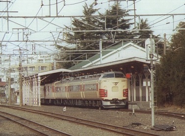 新宿へ出かけたら、国鉄ホームに警察など警備がすごかった。もしや、思っていると183系お召し電車が原宿に向かって走って行った。早速追っかけた。14:15原宿着、原宿宮廷ホームに183系お召電車が停まっていた。ここまでご乗車されたようだった。駅員さんに「何時発ですか?」と尋ねたら「15:36発」と教えてくれた。一時間あるので一旦改札を出て近くのとんかつ屋で昼メシを食べた。満腹になり、ホームに戻る、15:36定刻に183系お召電車は品川方面に発車して行った。山手線内回りが来てあやうくカブリそうになったがギリギリセーフだった。 |