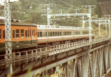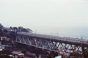 真鶴道路に降りて駐車場の立ち食いそば屋で天玉そば280円で昼メシにした、トイレも借りた。午後は熱海方に廻り、みかん山の中から撮った。最初の撮影ポイントへ移動する時に凶暴な犬に行く手を阻まれ、大回りして時間をくってしまった。3本のLSE試運転が撮れた。15:11にはEF58-60の荷物列車・15:46にはEF58-61の有楽町線甲種回送が共に上り方向であったが熱海方にいた為、カマは撮れなかった。根府川16:04の113系で家に帰った。 |