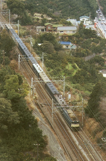 冷えたコーヒーとパンで朝メシにした。9:49特急みずほ通過前から江の浦俯瞰ポイントに移るまでの間、カメラの調子が悪くなり何回もシャッターが切れなくなった。11:15通過の荷物列車の最後部にはマヤ34がついていたがこれも撮れなかった。13時過ぎまで米神踏切で撮り、その後根府川の先の江の浦俯瞰ポイントに移った。 |
