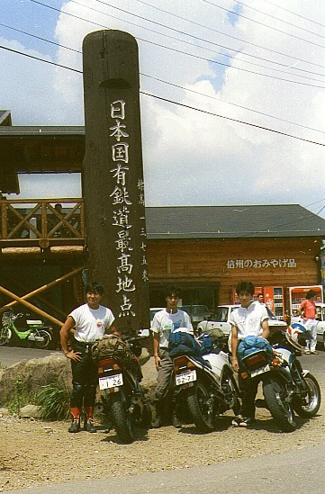 7:45起床、朝メシをご馳走になり、顔を洗ってウダウダ過ごす。今日は帰る日だ。皆でツーリングし鉄は無しだ(予定)。二泊もお世話になったW君のおばあちゃんにお礼を言って、10:31W君のおばあちゃん家発、つるんで走る。R141に入るとけっこうピースサインがおくられるので返す。12:00(906キロ)野辺山駅着、牛乳を買って飲む。しばらくして駅の先の最高地点へ行く。草原でゴロゴロしたりする、12:50に出発。