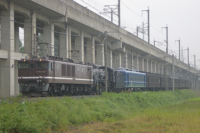 16:40 下りSL回送 EF64 1001+D51498+オヤ12-1+旧客x5 |